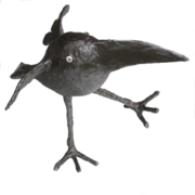 Jetzt zum Raben selbst. Technisch gesehen ist er ein lebensgrosses Unikat in Papier-mâché (auf Deutsch Pappmaschee) aus der Werkstatt von Yvan „Lozzi“ Pestalozzi (alles über ihn unter www.lozzi.ch). Ein Werk, das von Symboltracht trieft. Der Rabe wird als kluges Tier gerühmt, und ich hoffe, dass ich ihm da einigermassen gewachsen bin. Sollte jemand versucht sein, vom rabenschwarzen Tier auf den Zustand meiner Seele zu schliessen, so kann ich das nicht verhindern. Aber eigentlich hat der Rabe – übrigens ein Geburtstagsgeschenk von meiner Frau – es mir vor allem damit angetan, dass er lustig aussieht, worin ich ihm nicht gleiche. Und last but not least: Im echten Leben fallen Raben durch ihr lautes Gekrächz auf. Ob mein Blog da mithalten kann, weiss ich nicht.